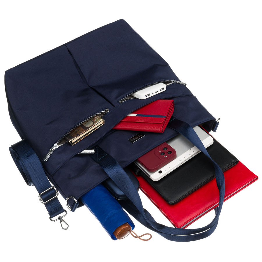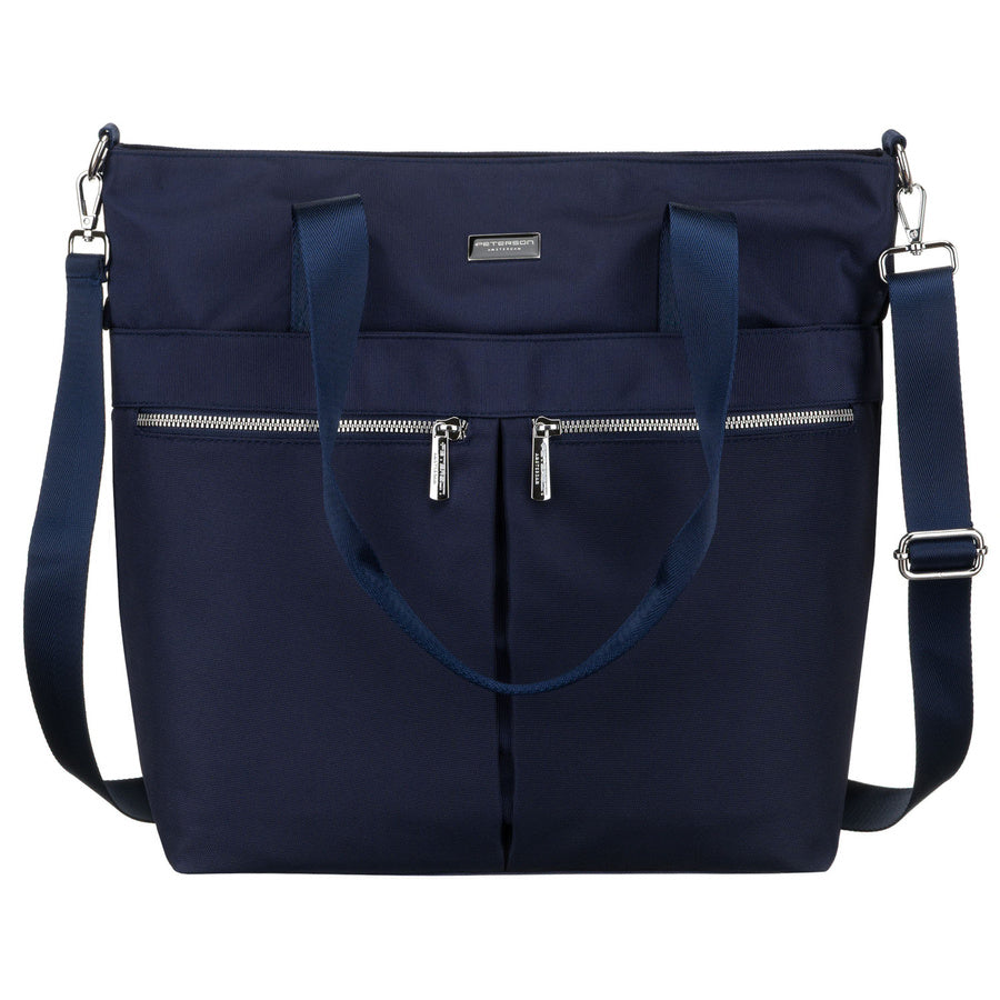 Moteriška tamsiai mėlyna vieno skyriaus poliesterio shopper rankinė „Peterson“ su reguliuojamu, nuimamu dirželiu P40