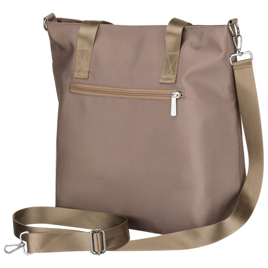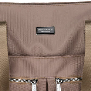 Moteriška vieno skyriaus smėlio spalvos „Peterson“ shopper rankinė su užtrauktuku, iš dirbtinės odos P38