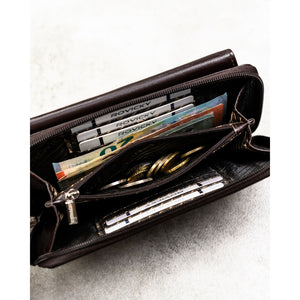 Vīriešu maks ir paredzēts, lai visas jūsu nepieciešamās lietas glabātu vienuviet. Divi atsevišķi nodalījumi ļauj ērti sakārtot kartes, dokumentus, skaidru naudu un tālruni.