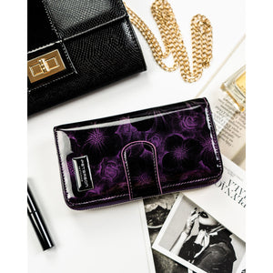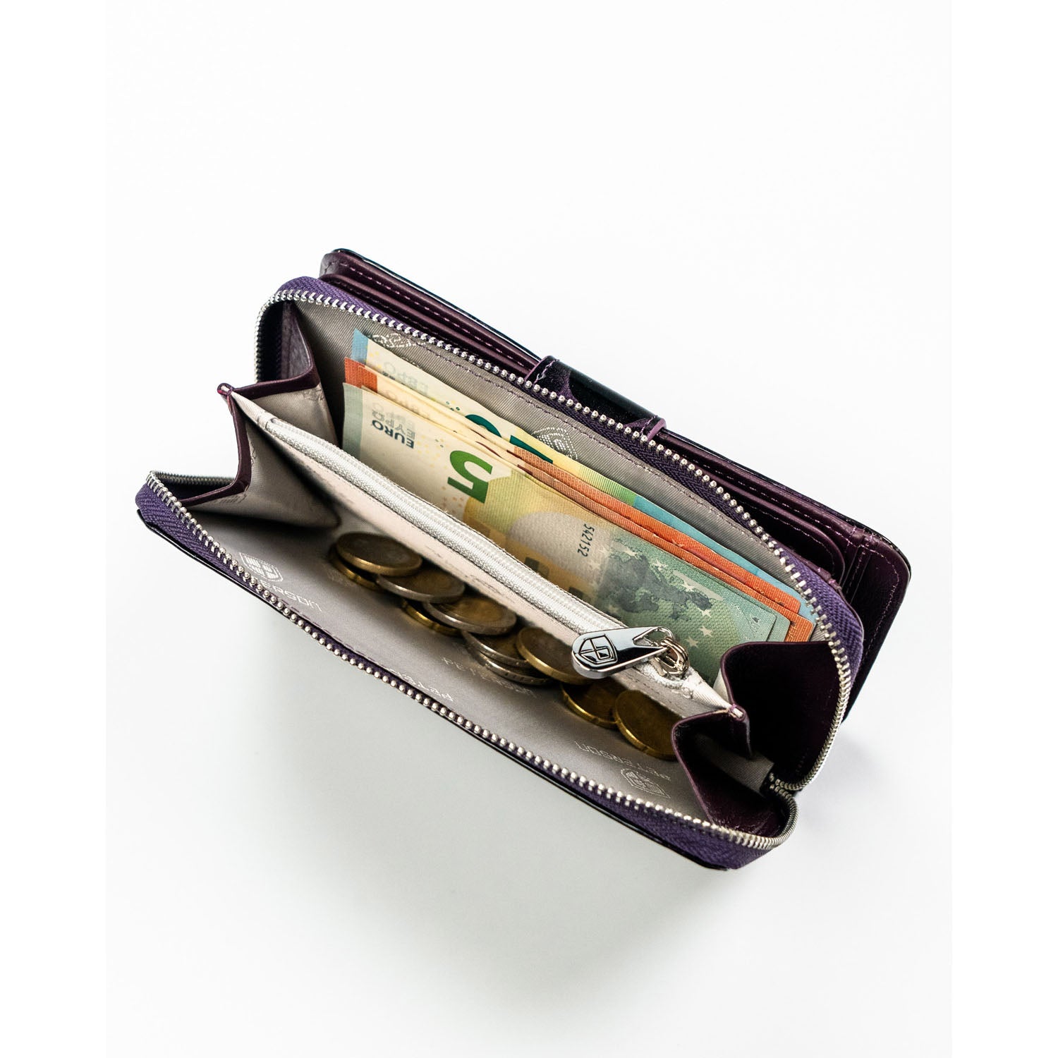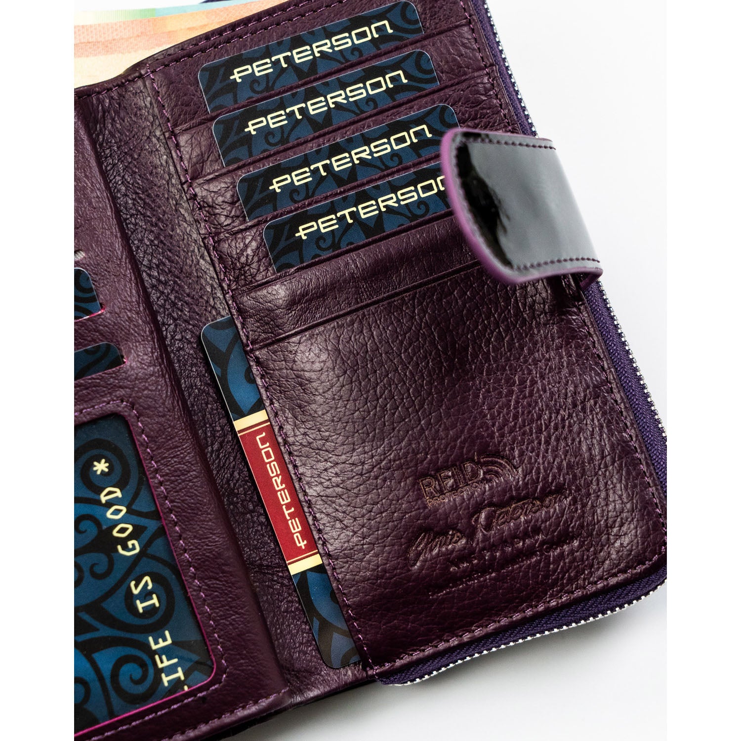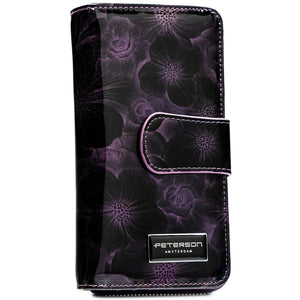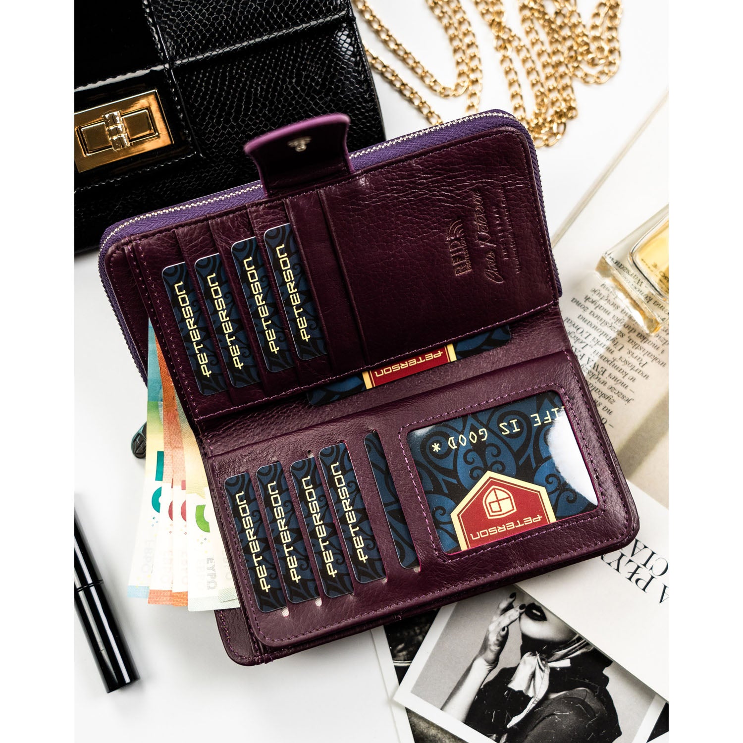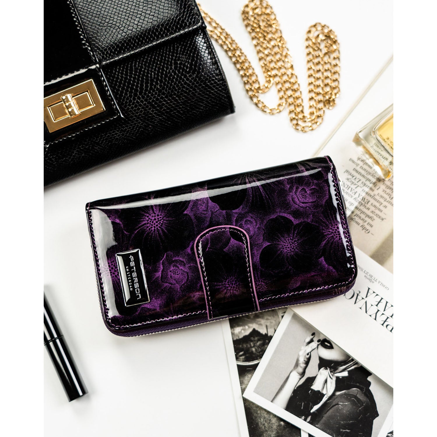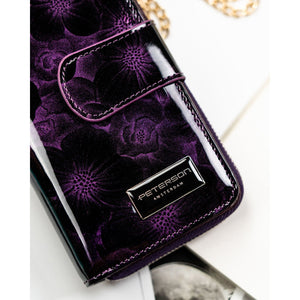 Peterson sieviešu rokassoma no mākslīgās ādas, violetā krāsā, ar aizdari un RFID aizsardzību.