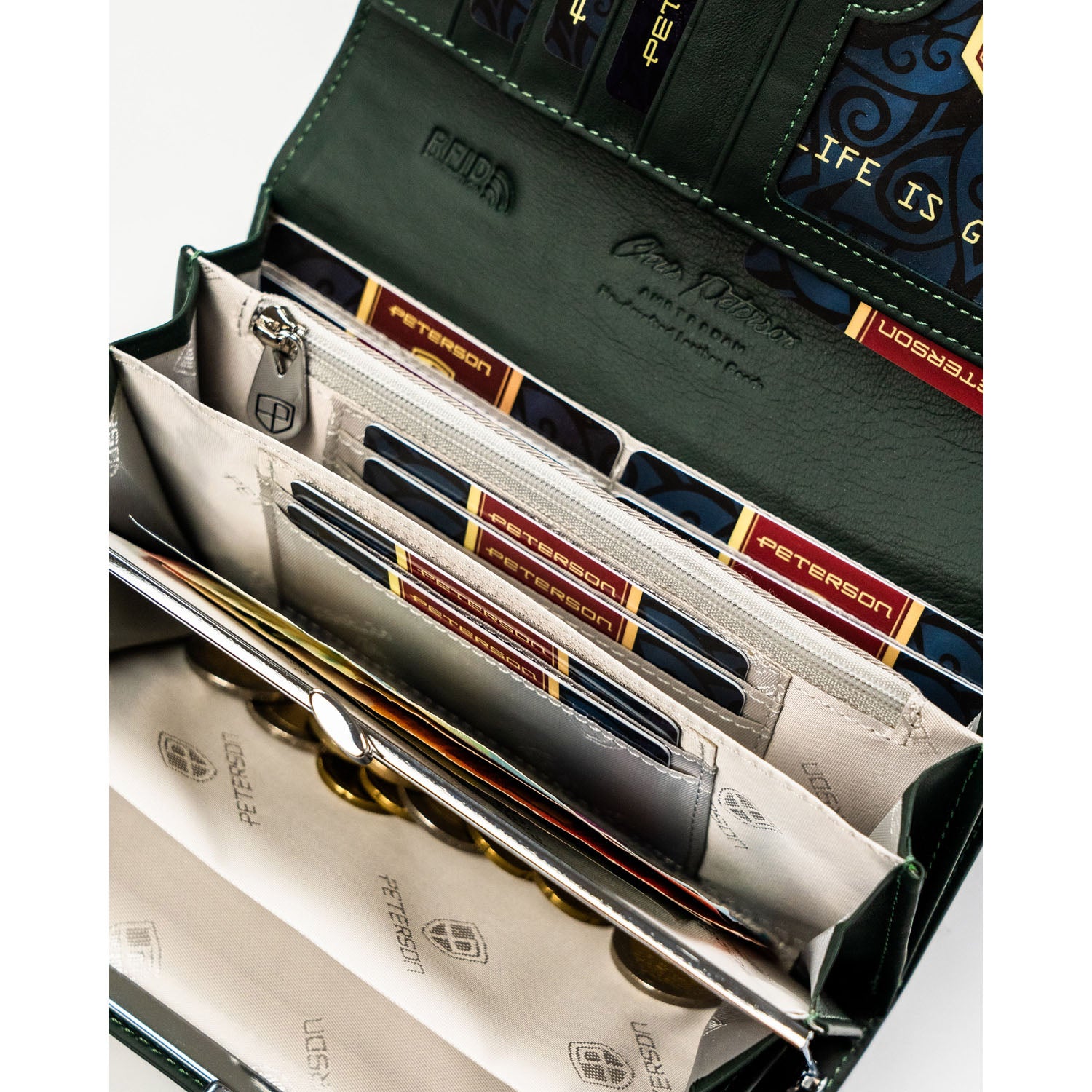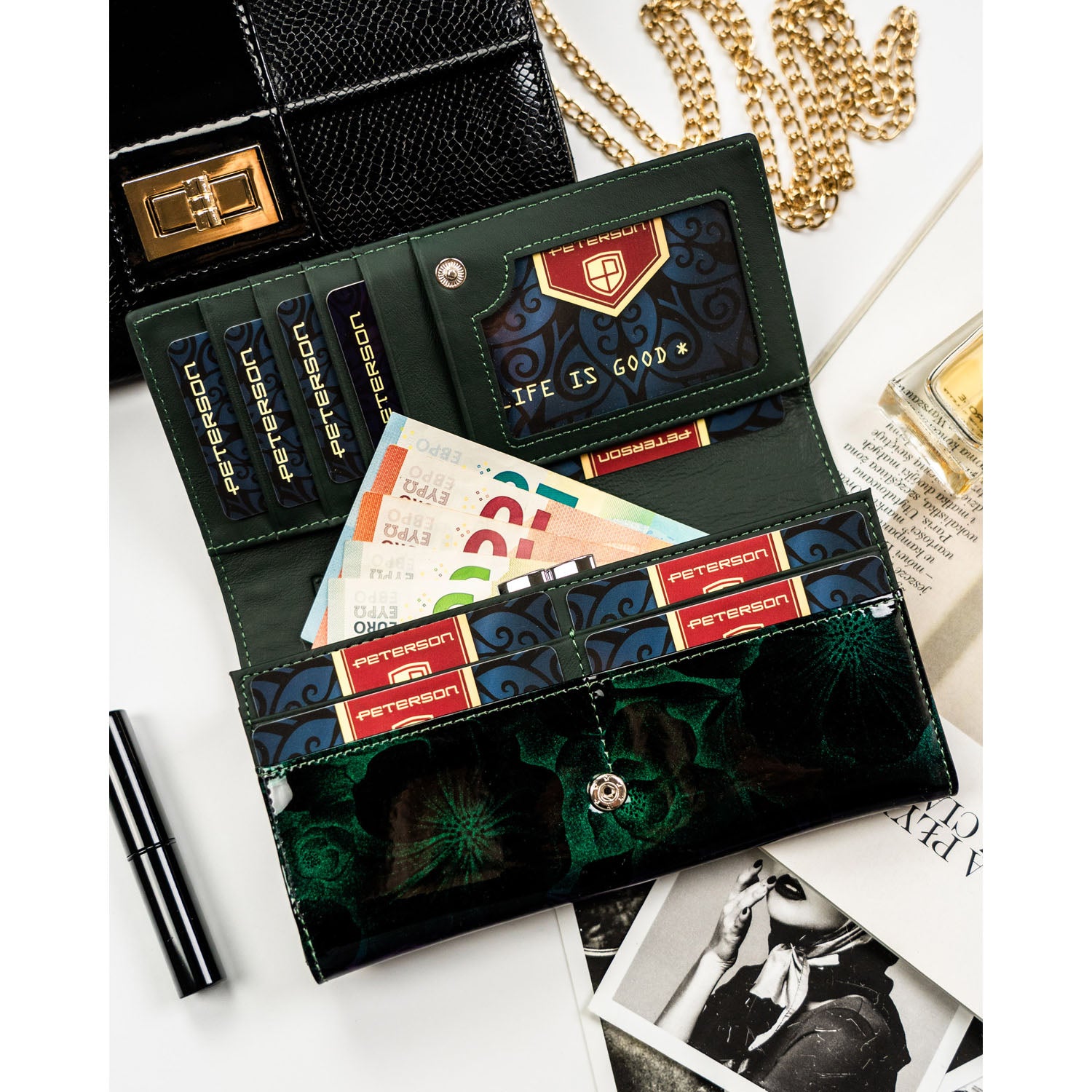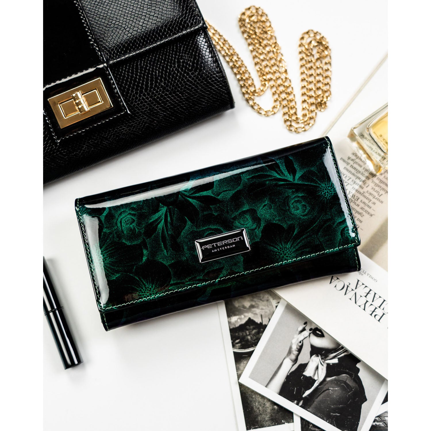 Peterson sieviešu zaļa rokassoma no mākslīgās ādas, kas lieliski piemērota ikdienas lietošanai.
