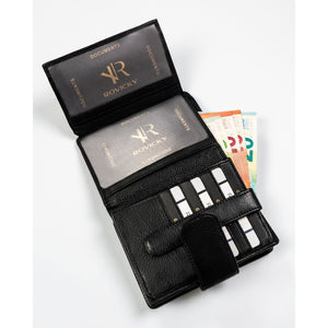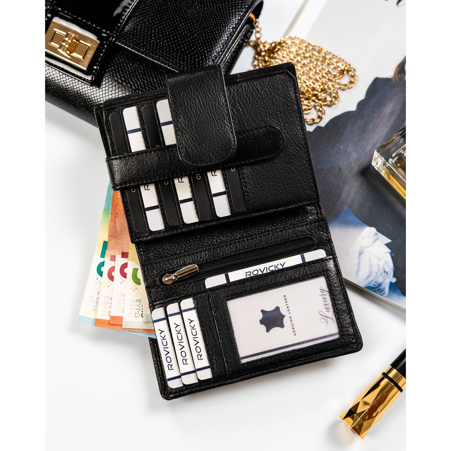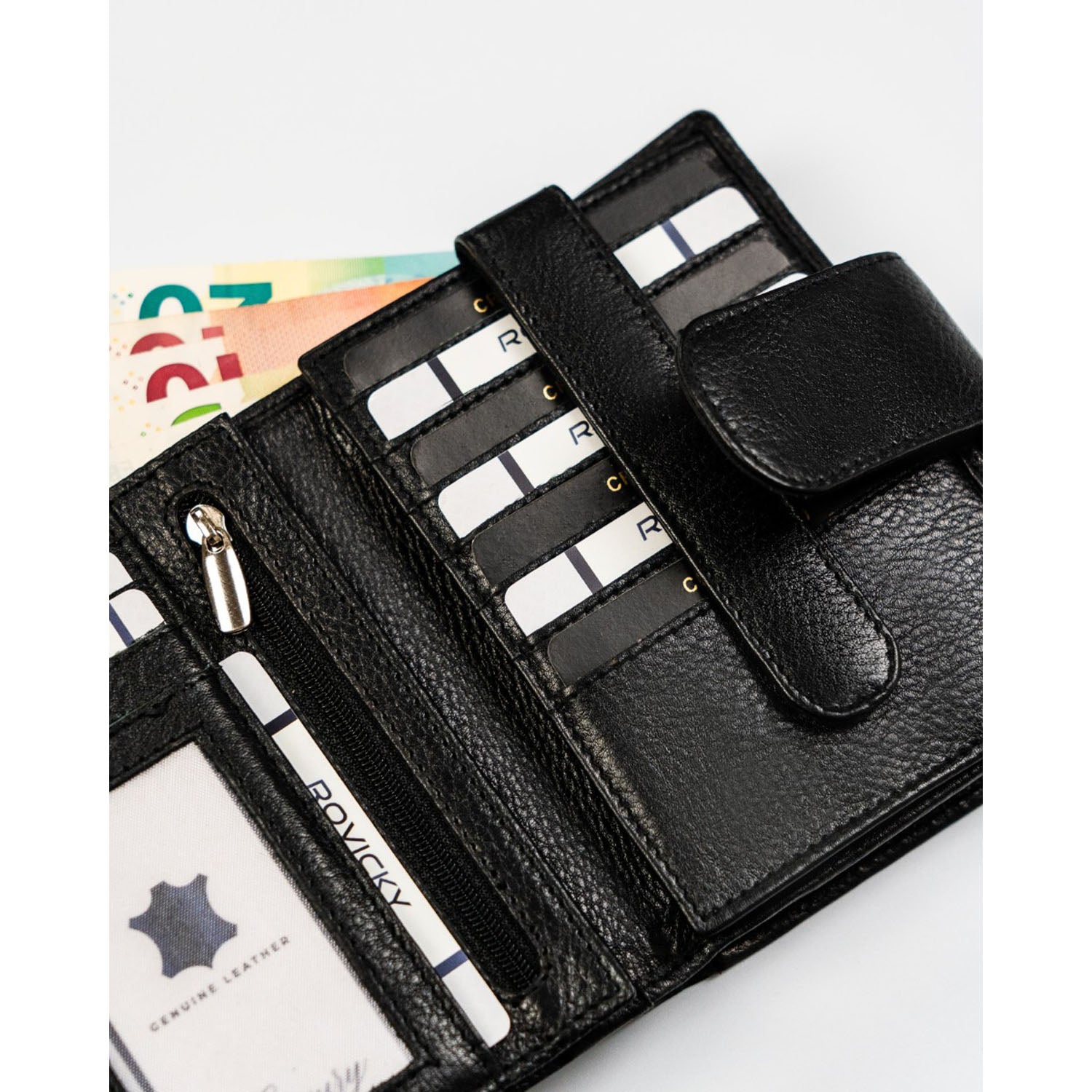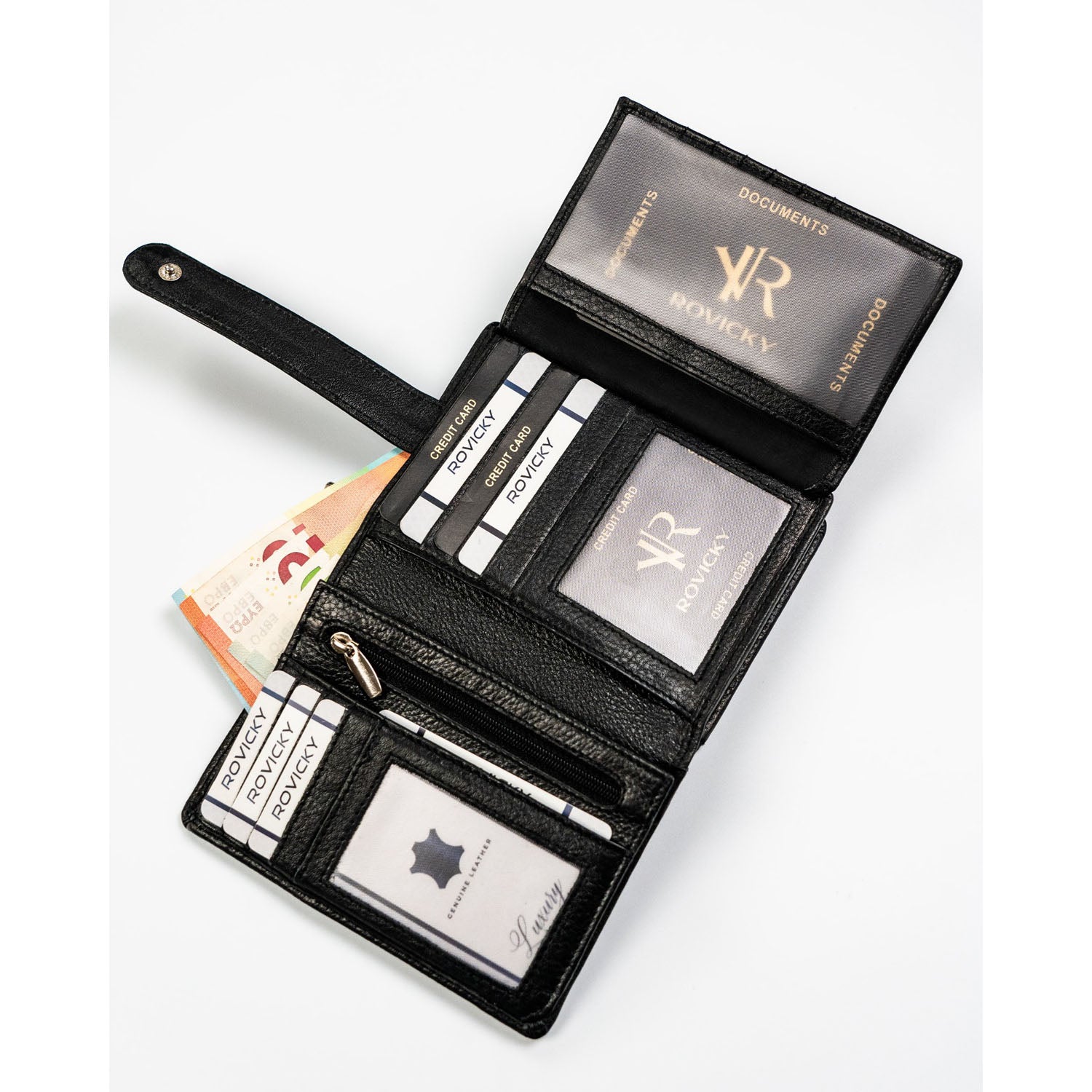 Rovicky sieviešu rokassoma no īstas ādas, melnā krāsā, ar rāvējslēdzēju un RFID aizsardzību.