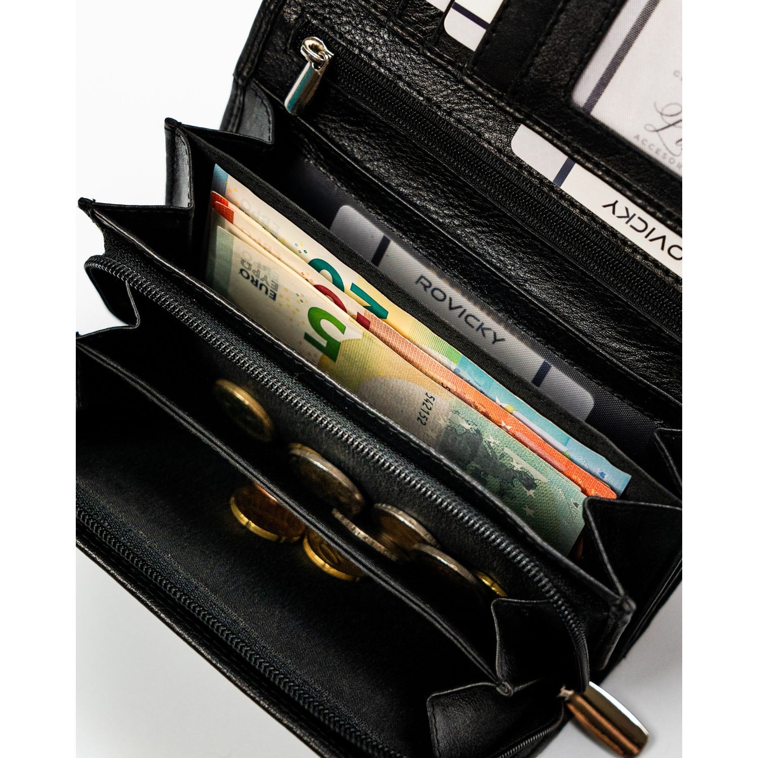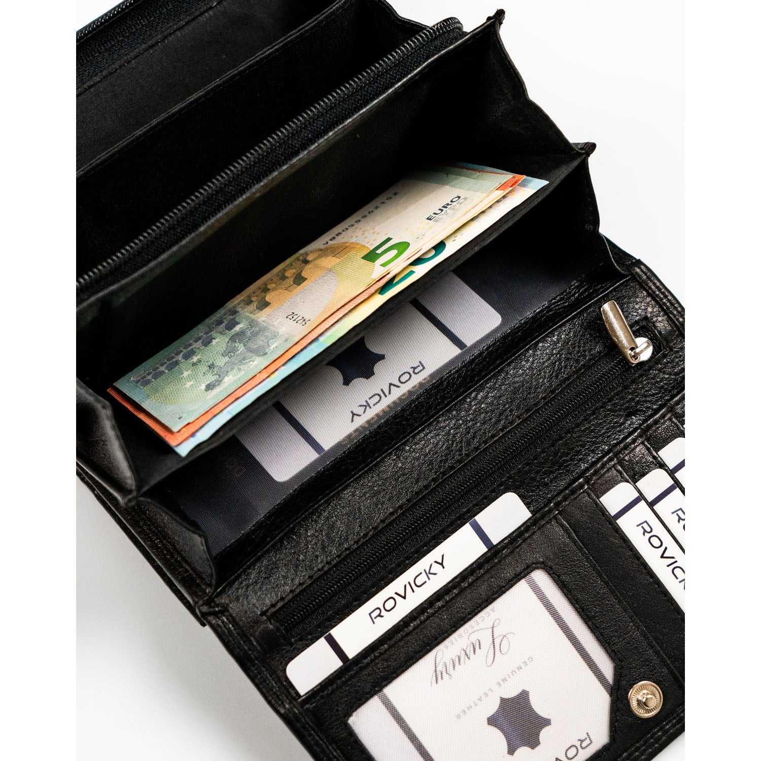 Eleganta Rovicky sieviešu rokassoma, izgatavota no īstas ādas, melnā krāsā, ar RFID aizsardzību.