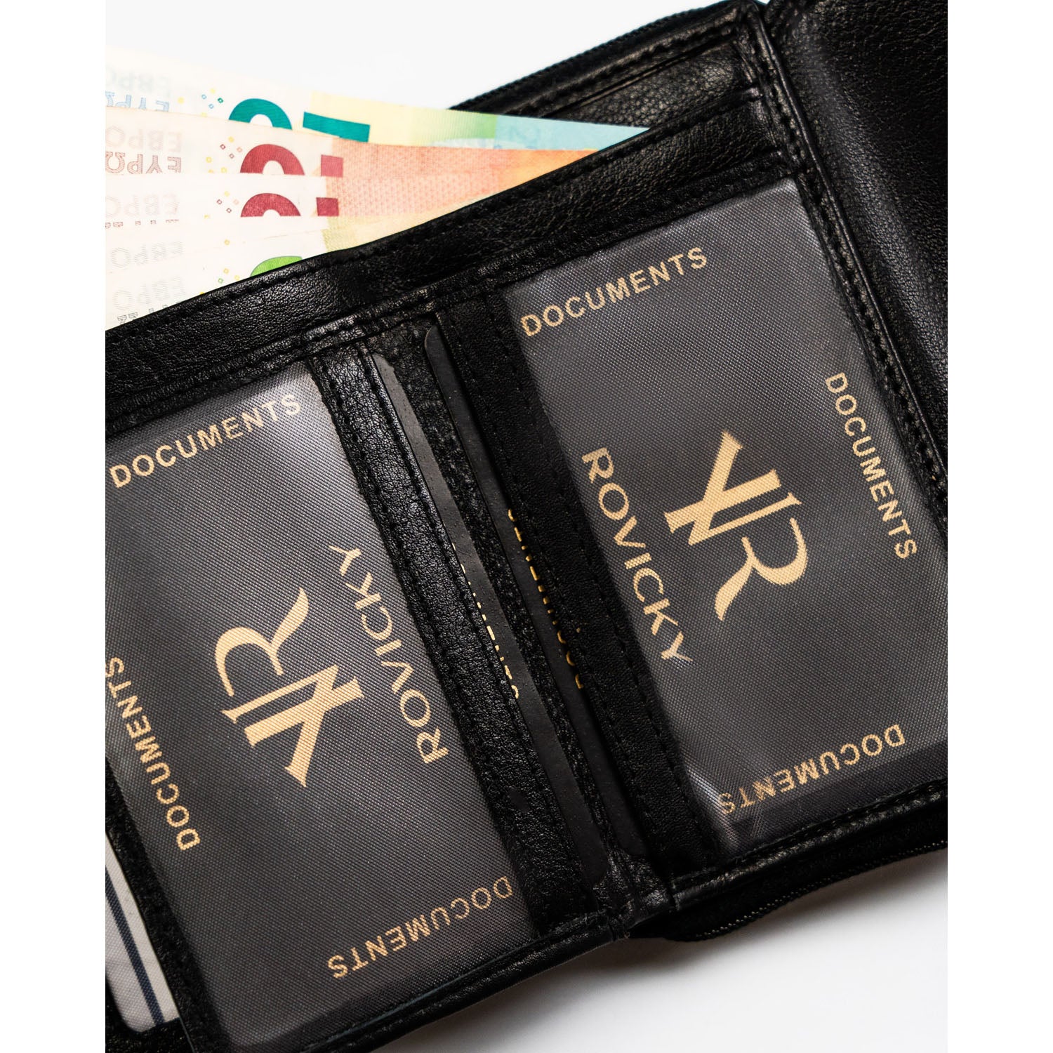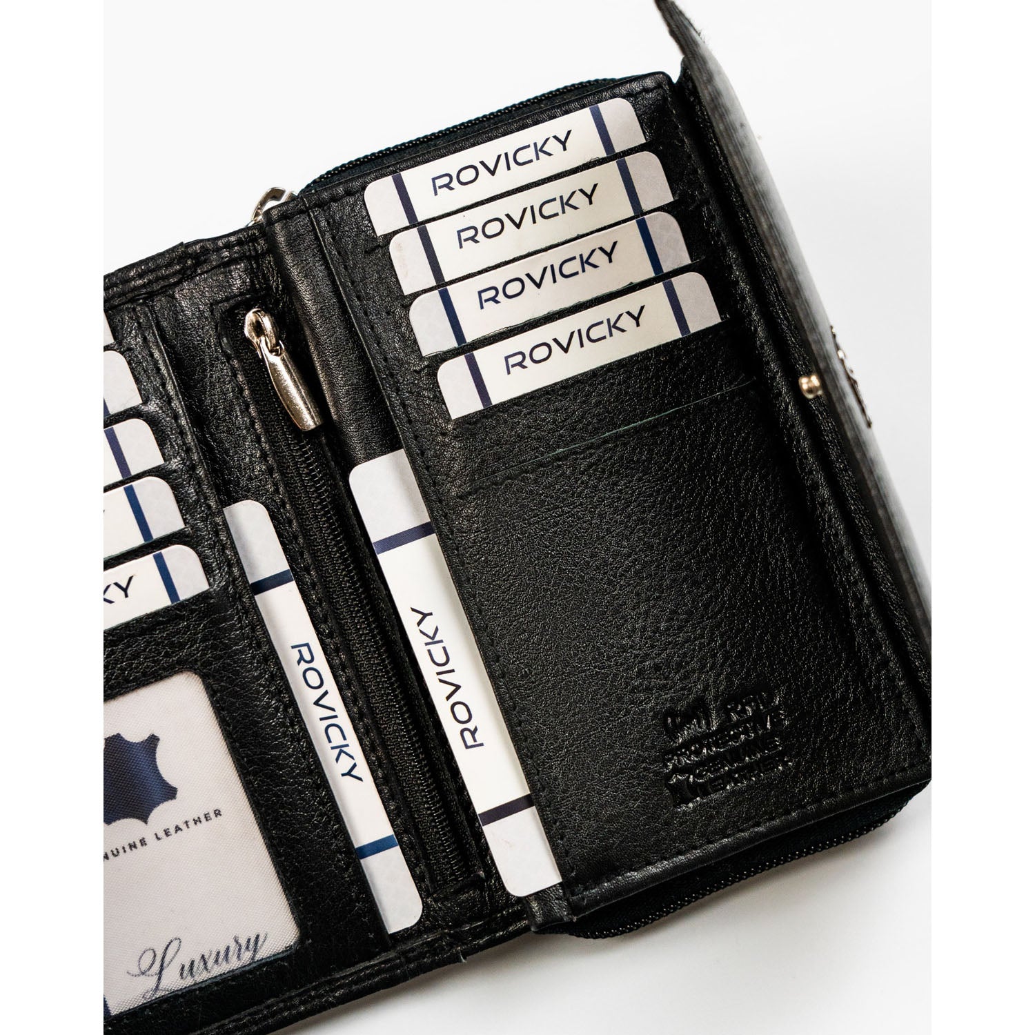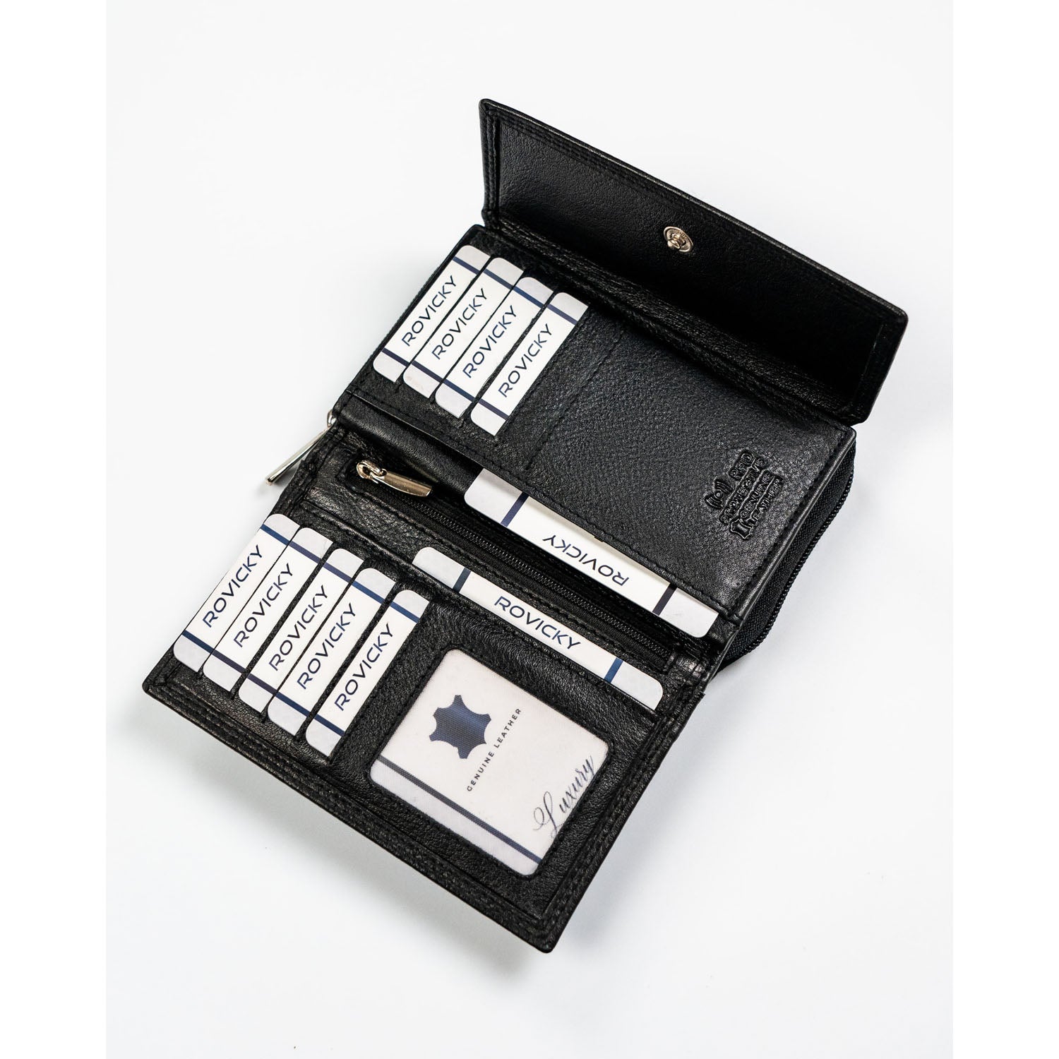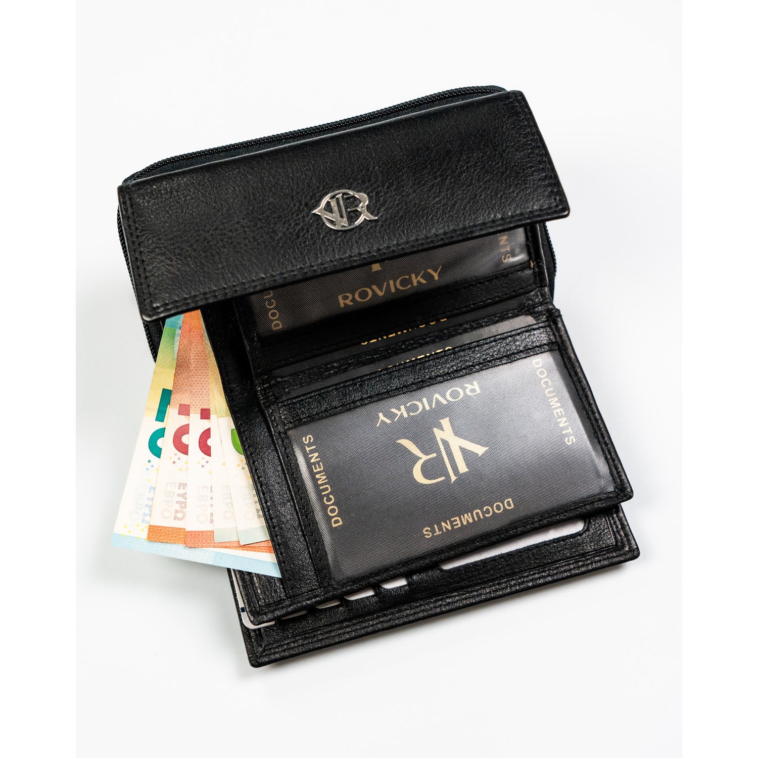 Rovicky sieviešu rokassoma no īstas ādas, melnā krāsā, ar aizdari un rāvējslēdzēju.