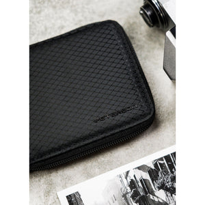 Peterson vīriešu rokassoma, izgatavota no mākslīgās ādas, melnā krāsā, ar RFID aizsardzību.