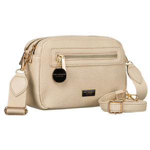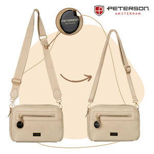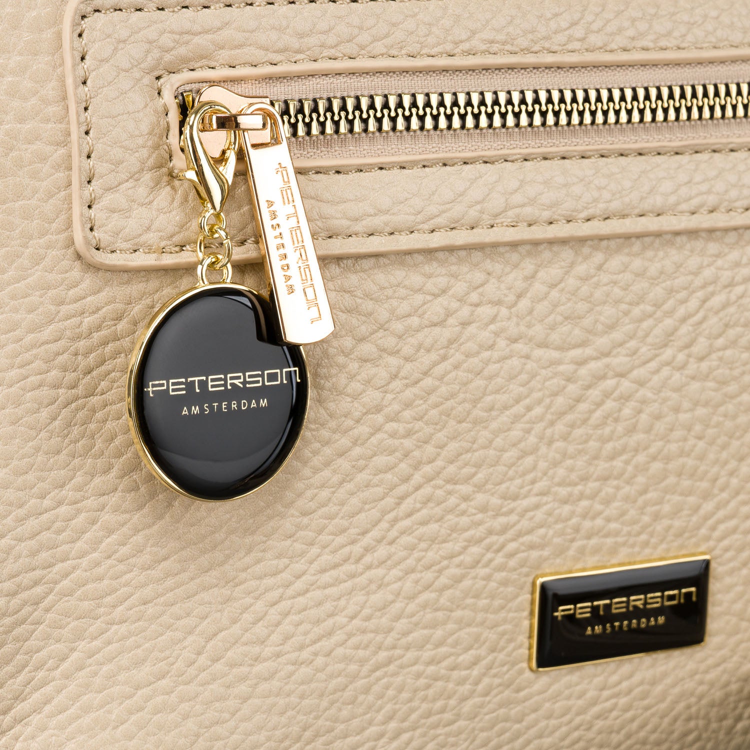 Peterson tumši bēša sieviešu rokassoma no organiskās ādas - stilīga un praktiska izvēle.