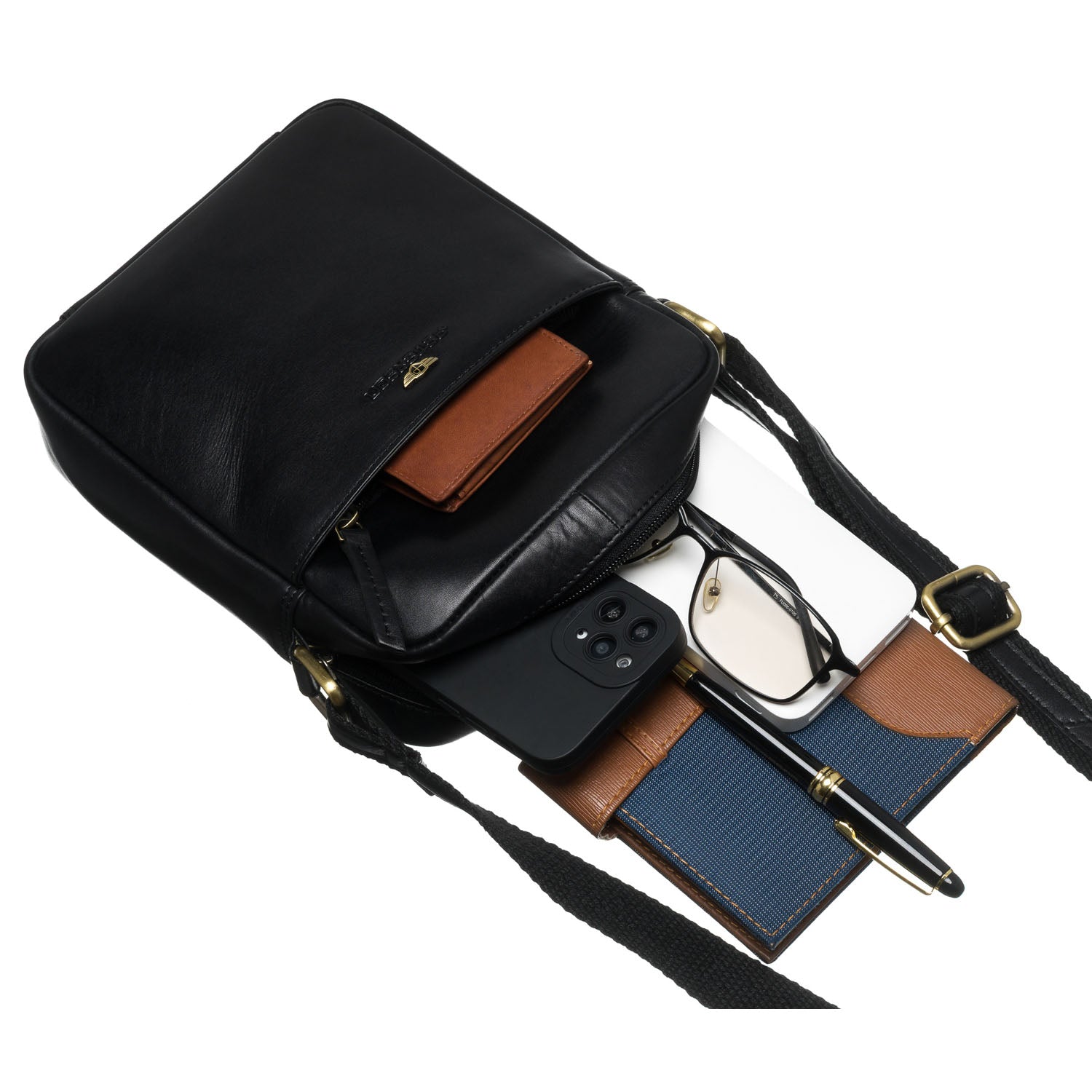 Peterson vīriešu soma no dabīgās ādas, melnā krāsā, lieliski piemērota ikdienas lietošanai.