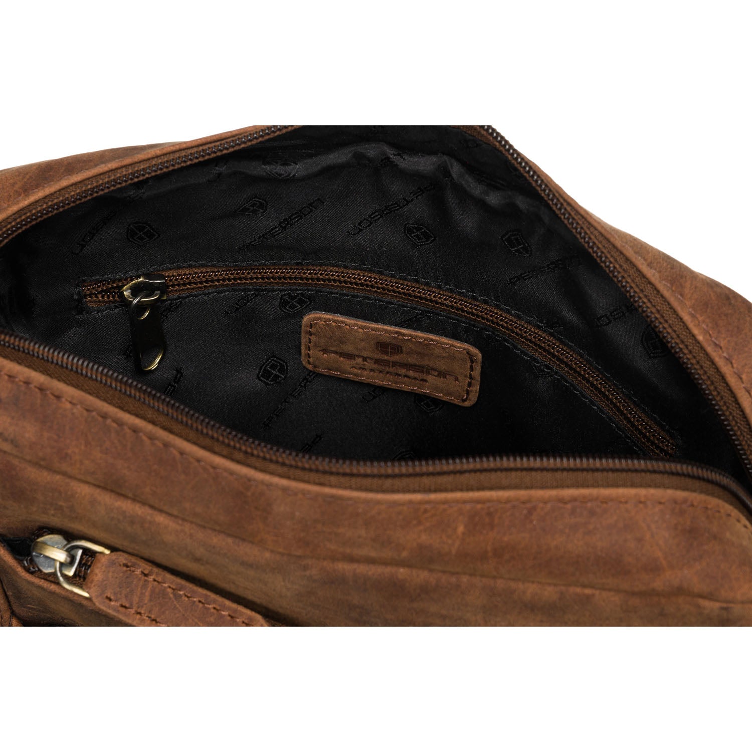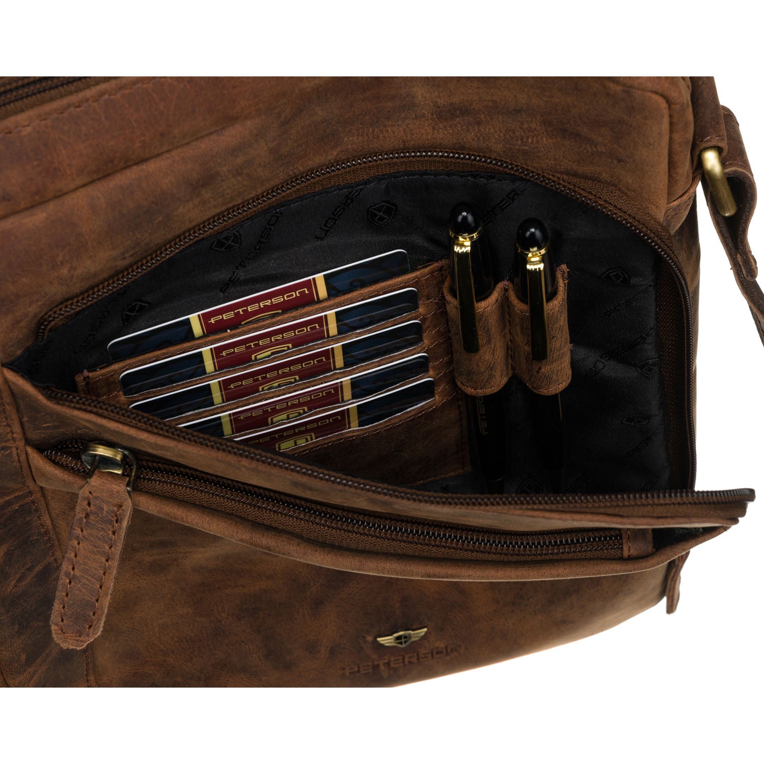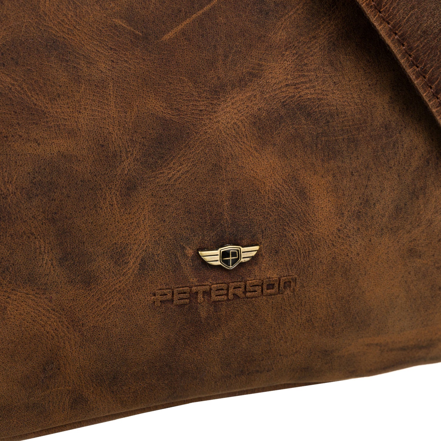 Peterson vīriešu soma no dabīgas ādas, brūnā krāsā, ar diviem nodalījumiem un četrām kabatām.