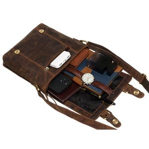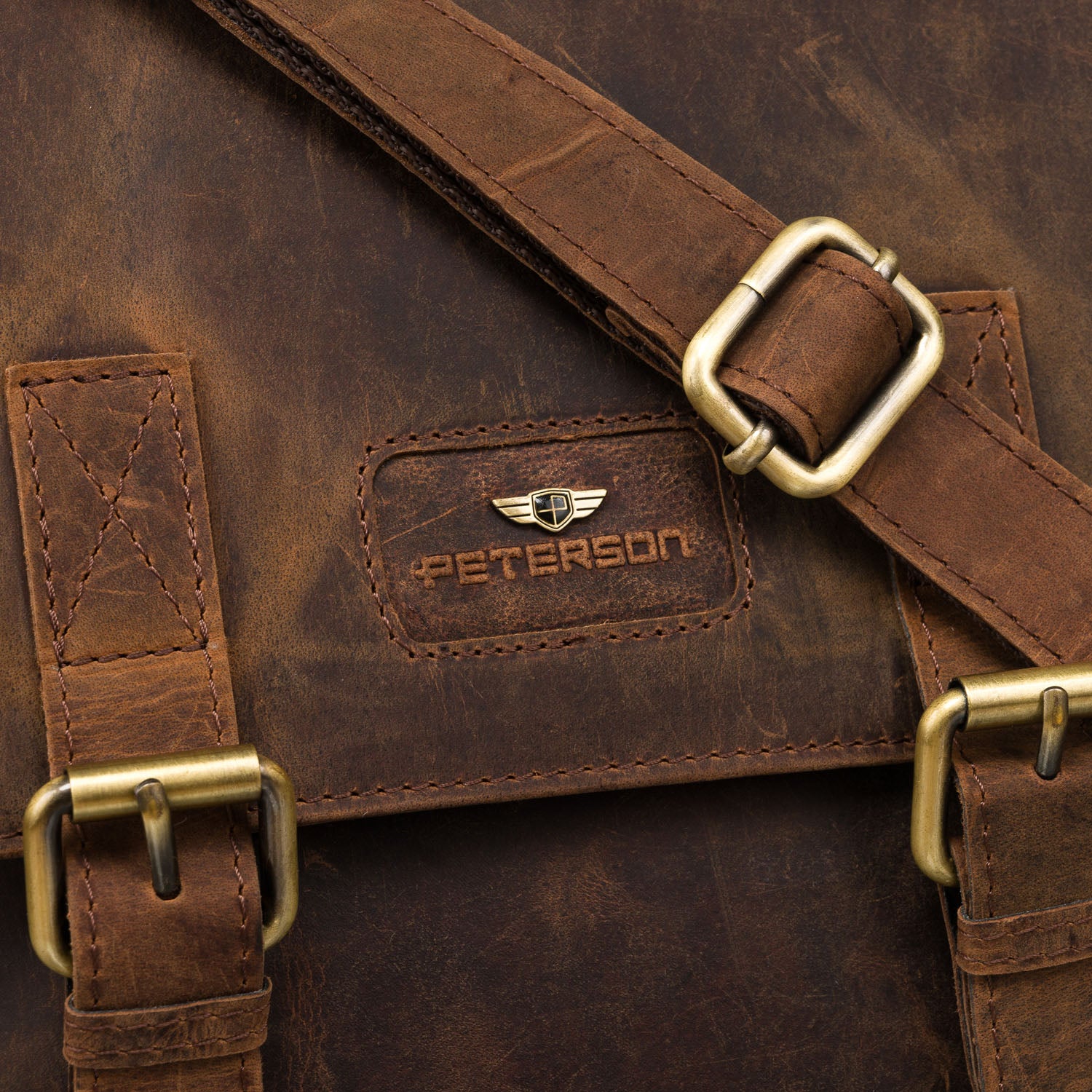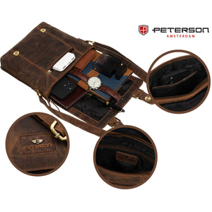 Peterson vīriešu soma no dabīgās ādas, brūnā krāsā, ar regulējamu siksnu.