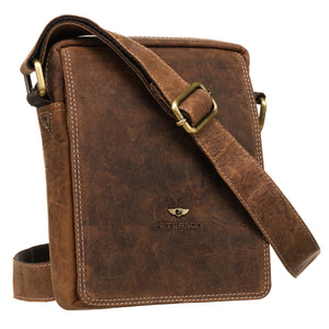 Peterson vīriešu soma no dabīgas ādas, brūnas, ar regulējamu siksnu.