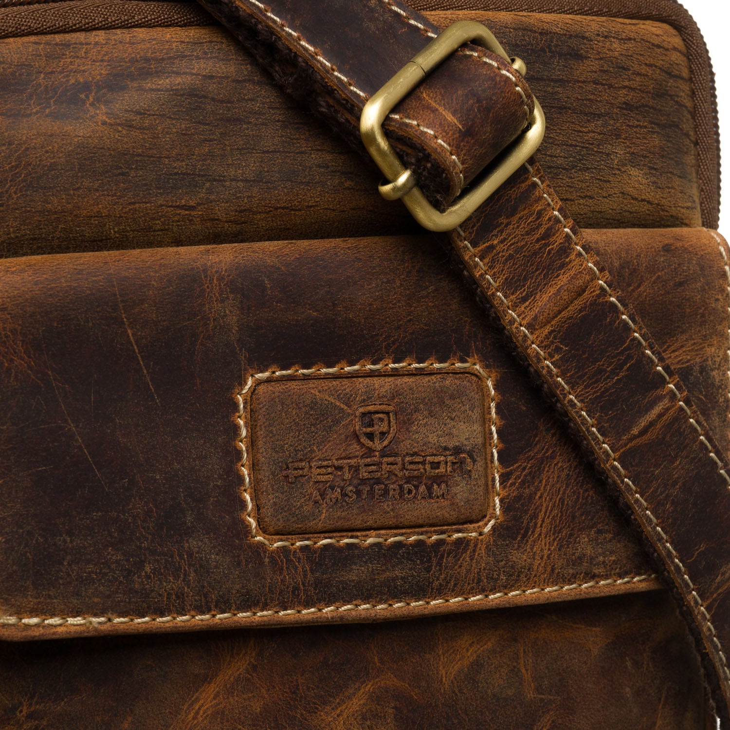 Peterson vīriešu soma no dabīgās ādas, brūnā krāsā, lieliski piemērota ikdienas lietošanai.