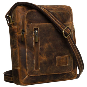Peterson vīriešu soma no dabīgās ādas, brūna ar regulējamu siksnu