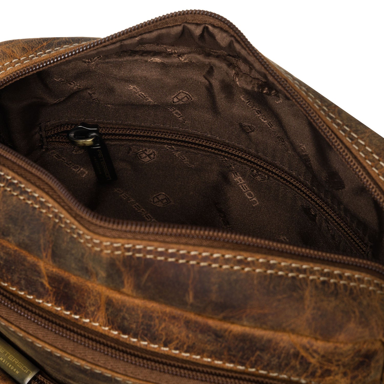 Peterson vīriešu soma no dabīgās ādas, brūnā krāsā, ar regulējamu siksnu.