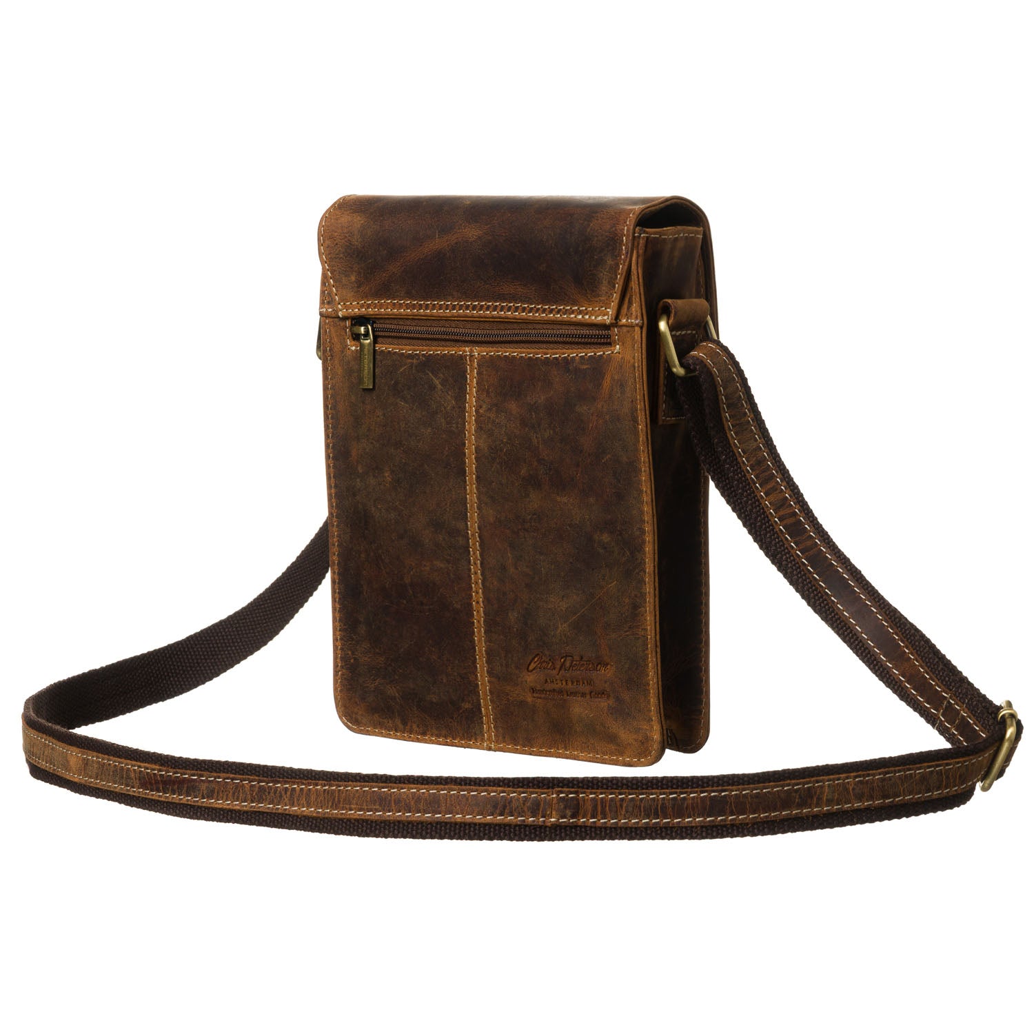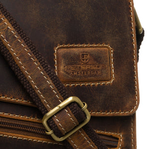 Peterson vīriešu plecu soma no dabīgās ādas, brūnā krāsā, lieliski piemērota ikdienas lietošanai.