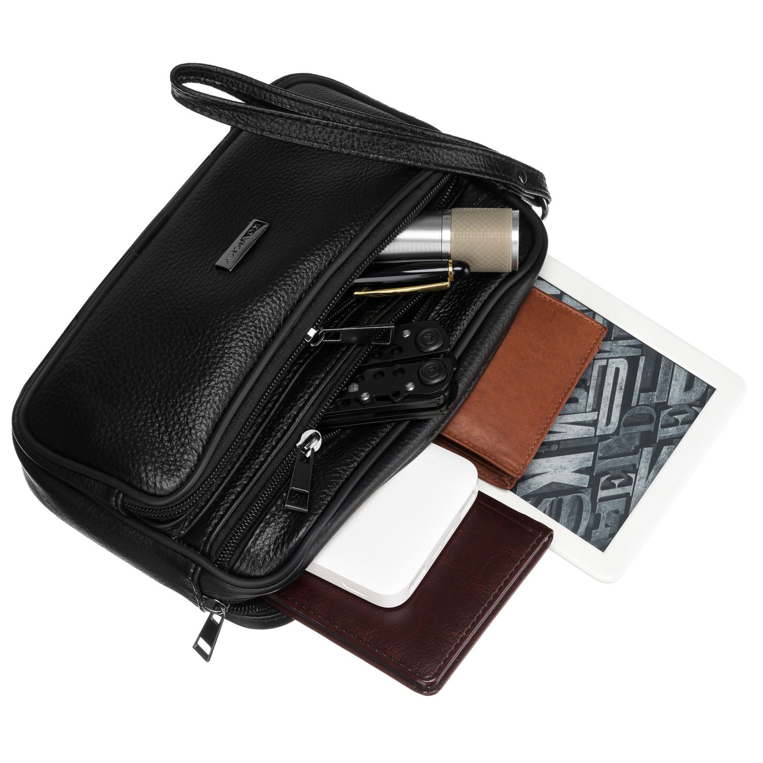 Kompakta Rovicky rokassoma no dabīgās ādas, melnā krāsā, lieliski piemērota ikdienai.