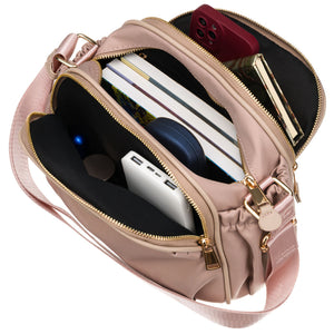 Rozā sieviešu neilona plecu soma