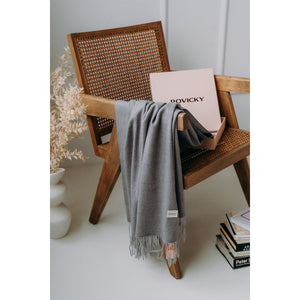 Rovicky šalle – elegants pelēks aksesuārs, lieliski piemērots rudenim, ziemai un pavasarim.