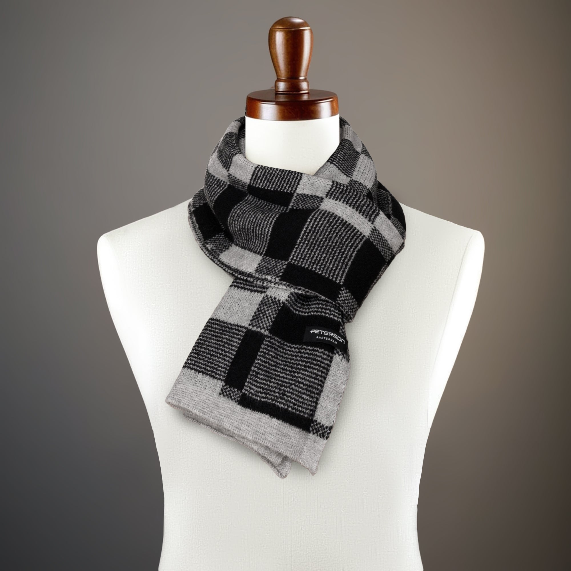Eleganta vīriešu Peterson akrila šalle - silti pelēka ar melniem akcentiem ikdienas valkāšanai un darbam.