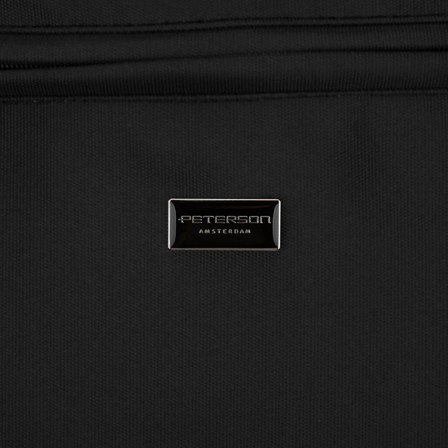 Talpi juoda moteriška „Peterson“ shopper rankinė su rankenomis ir prisegamu dirželiu, iš dirbtinės odos P29