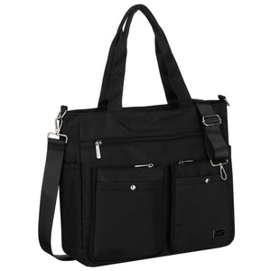Juoda talpi moteriška rankinė su skyriumi nešiojamam kompiuteriui (poliesteris)