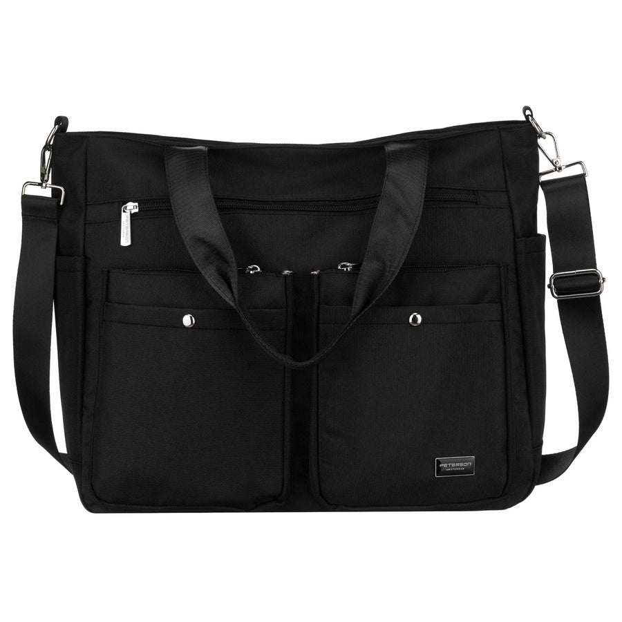 Talpi juoda moteriška poliesterio rankinė su skyriumi nešiojamajam kompiuteriui „Peterson“ P33
