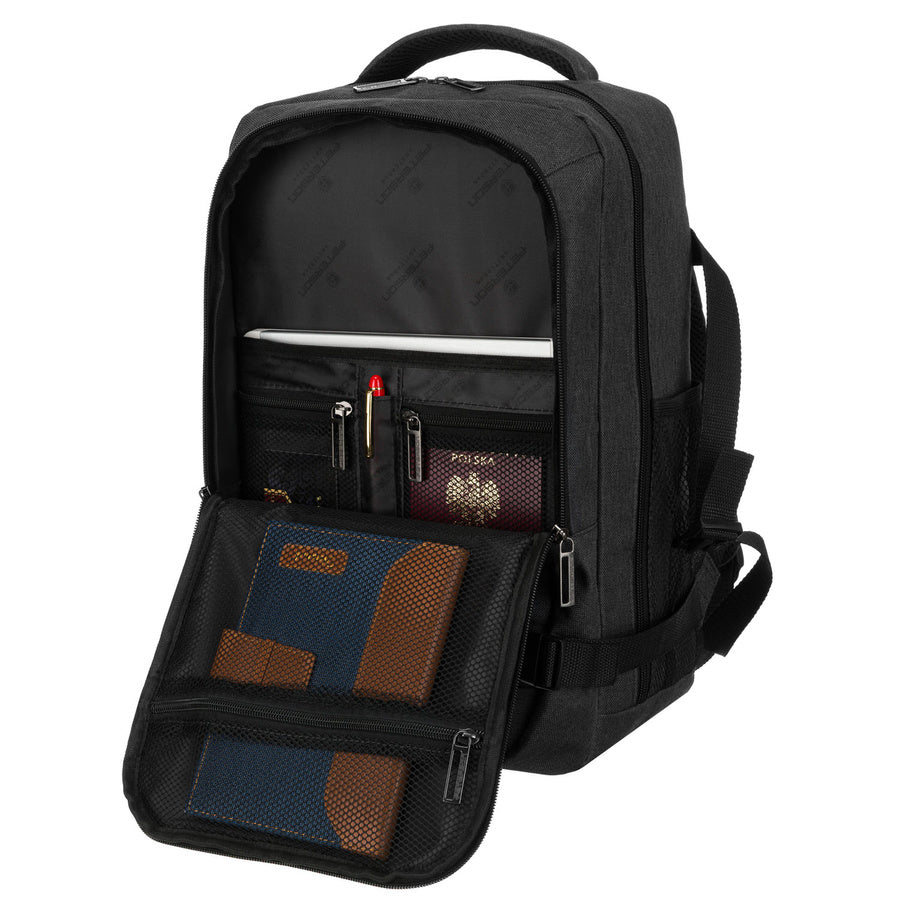 Talpus kelioninis juodas poliesterio kuprinė (rankiniam bagažui)