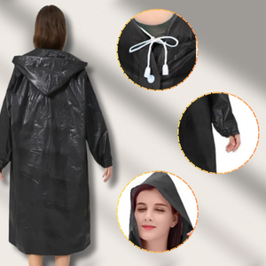 Garš unisex lietusmētelis ar kapuci, ideāli piemērots ceļojumiem un pārgājieniem. Šis mētelis nodrošina drošu aizsardzību pret lietu un vēju, lai jūs varētu justies ērti jebkuros laika apstākļos.