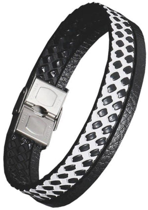 Šī ādas aproce ar nerūsējošā tērauda aizdari ir elegants un stilīgs aksesuārs, kas labi sader ar dažādiem stiliem un tērpiem.