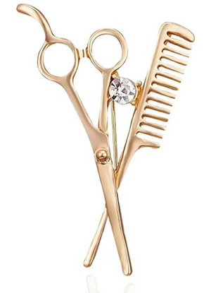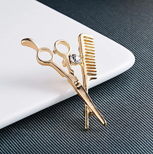 Šai brošai ir unikāls dizains, kas apvieno šķēru un ķemmes motīvus, padarot to par lielisku izvēli frizieriem vai matu veidošanas entuziastiem. Spīdīgi mākslīgie akmentiņi piešķir nelielu mirdzumu, piešķirot izsmalcinātību un eleganci.