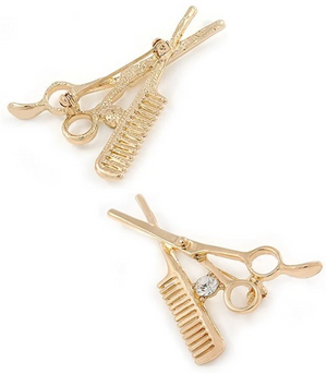 Zelta piespraude ar šķērēm un dekoratīvu friziera ķemmi