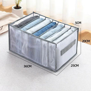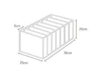 Šis apģērbu organizators ir lielisks risinājums, lai sakārtotu drēbes skapī vai atvilktnē. Tā izmēri ir 36 cm garums, 25 cm platums un 20 cm augstums, un tas ir ideāli piemērots blūzēm, džemperiem, krekliem, cepurēm un cimdiem.