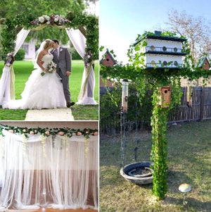 - Materiāli: Elastīga stieple, apstrādāta ar plastmasu, lapas izgatavotas no auduma.
