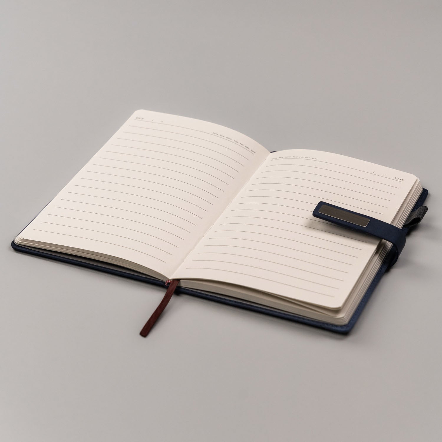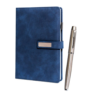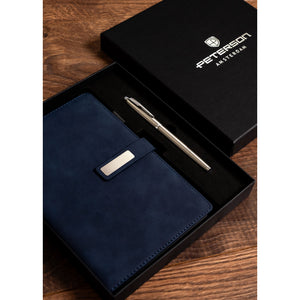 Dāvanu komplekts: A5 piezīmju grāmatiņa (zila) un pildspalva (melna tinte)