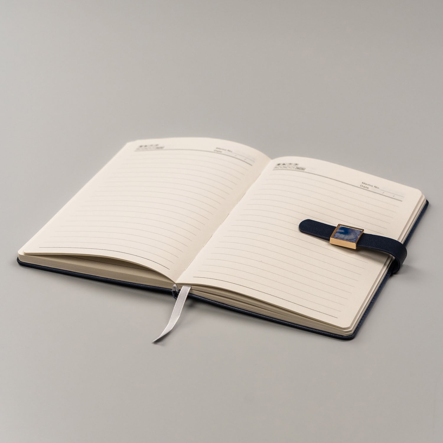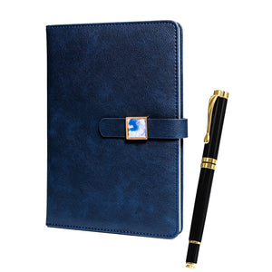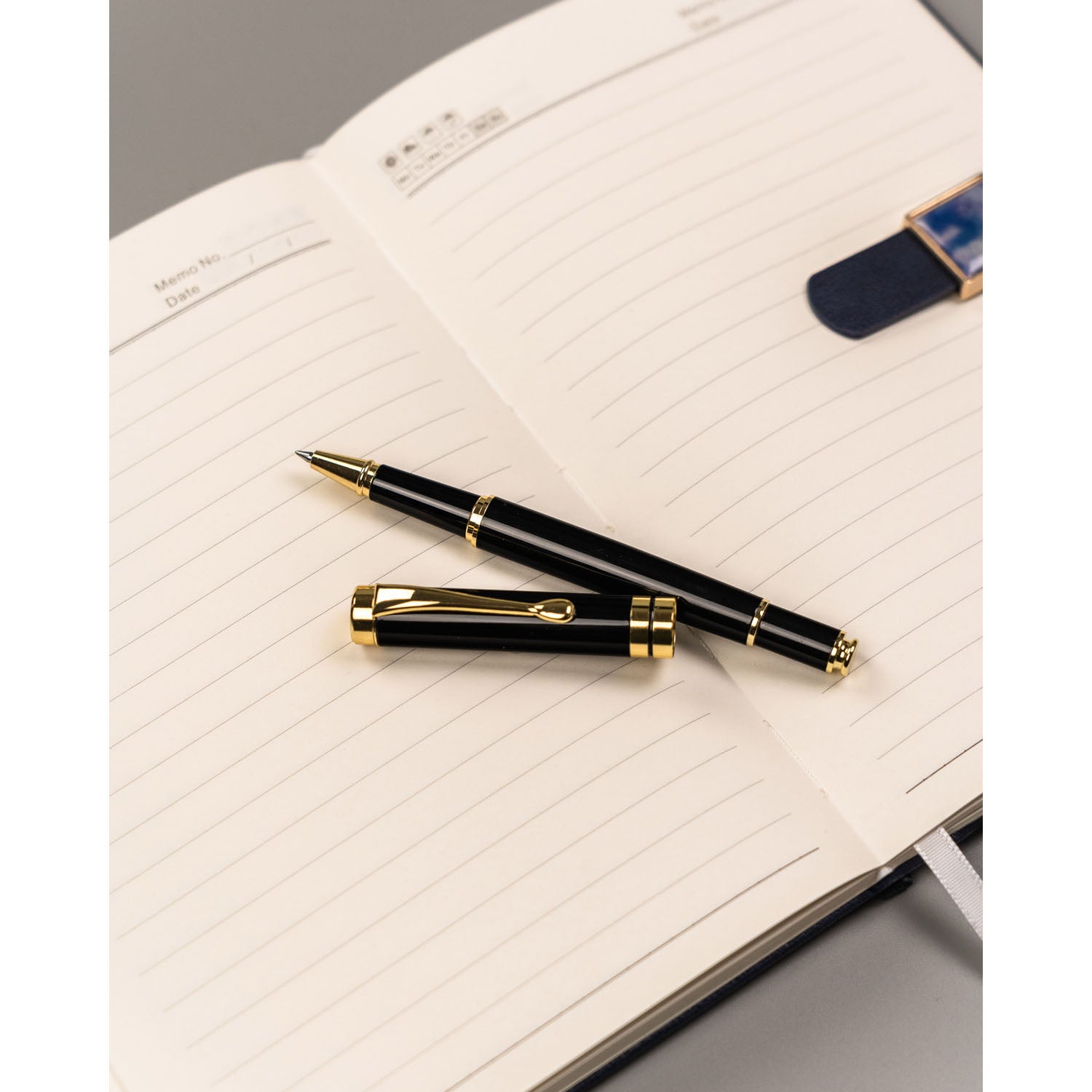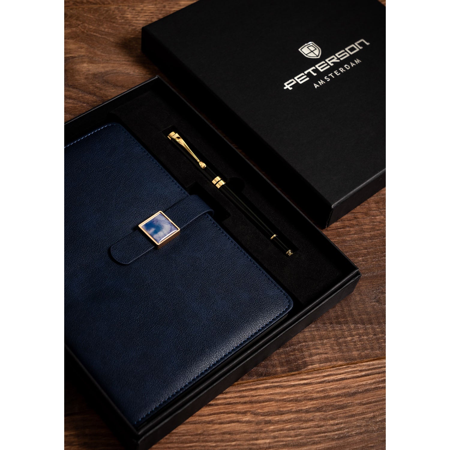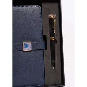 Šis dāvanu komplekts, kas sastāv no elegantas zilas līnijas piezīmju grāmatiņas un melnas pildspalvas, ir lieliska izvēle gan biznesam, gan ikdienas lietošanai.
