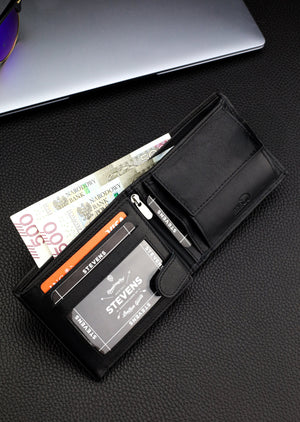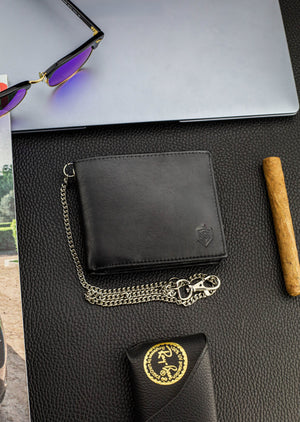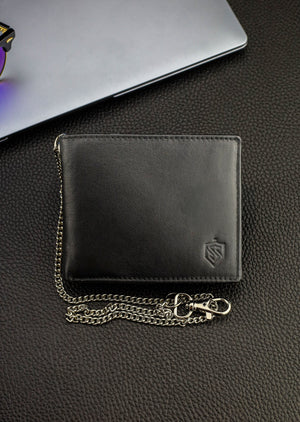 Melns vīriešu maks STEVENS ar ķēdīti S1084