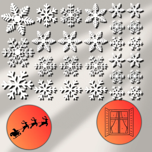Šis Ziemassvētku logu uzlīmju komplekts ar sniegpārslām ir lieliska izvēle, lai radītu svētku atmosfēru jūsu mājās. Komplektā ietilpst 27 uzlīmes, kas ir ideāli piemērotas logu, spoguļu un citu stikla virsmu dekorēšanai.