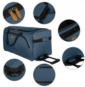 Šī ietilpīgā ceļojumu soma ir izgatavota no ļoti izturīga poliestera auduma, kas nodrošina izturību un uzticamību ceļojuma laikā.
