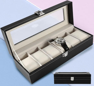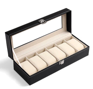 Šī taisnstūrveida pulksteņu kārba ir moderns un rūpīgi izstrādāts aksesuārs, kas lieliski papildinās jūsu pulksteņu kolekciju. Kārbai ir caurspīdīgs plastmasas lodziņš, kas ļauj redzēt tās saturu, to neatverot.