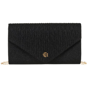 Sieviešu rokassoma, melna, ševrona raksts, ar ķēdīti