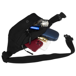 Sieviešu jostas soma, kas izgatavota no augstas kvalitātes poliestera, ideāli piemērota ikdienas lietošanai. Šai melnajai somai ir kompakts izmērs, tāpēc tā ērti pieguļ ķermenim.