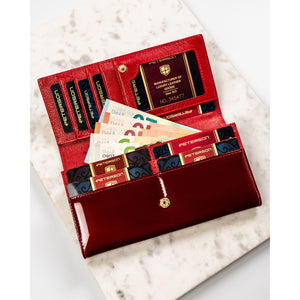 Šis elegantais sieviešu maks ir izgatavots no augstas kvalitātes īstas ādas, kas nodrošina izturību un stilīgu izskatu. Sarkanā krāsa piešķir tam atšķirīgu un elegantu izskatu, kas ir lieliski piemērots gan pilsētvides, gan ikdienas stilam.