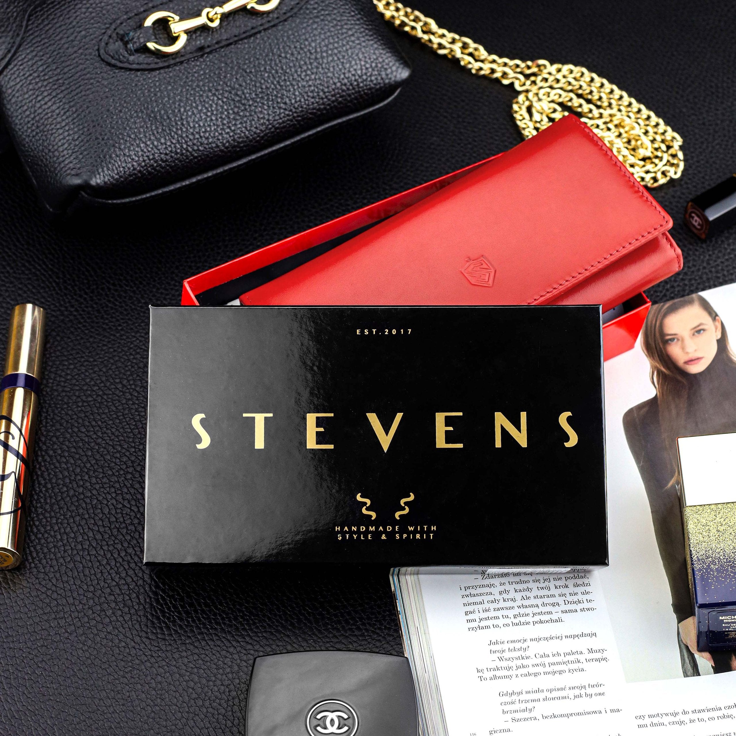 Šis elegantais sieviešu maks ir izgatavots no augstas kvalitātes īstas ādas, lai nodrošinātu izturību un stilu. Makam ir RFID aizsardzība, kas aizsargā jūsu bezkontakta karšu datus no nevēlamas skenēšanas. Tas ir ievietots oriģinālajā STEVENS® kastītē, padarot to par lielisku dāvanu.