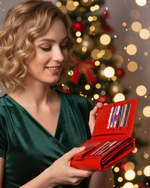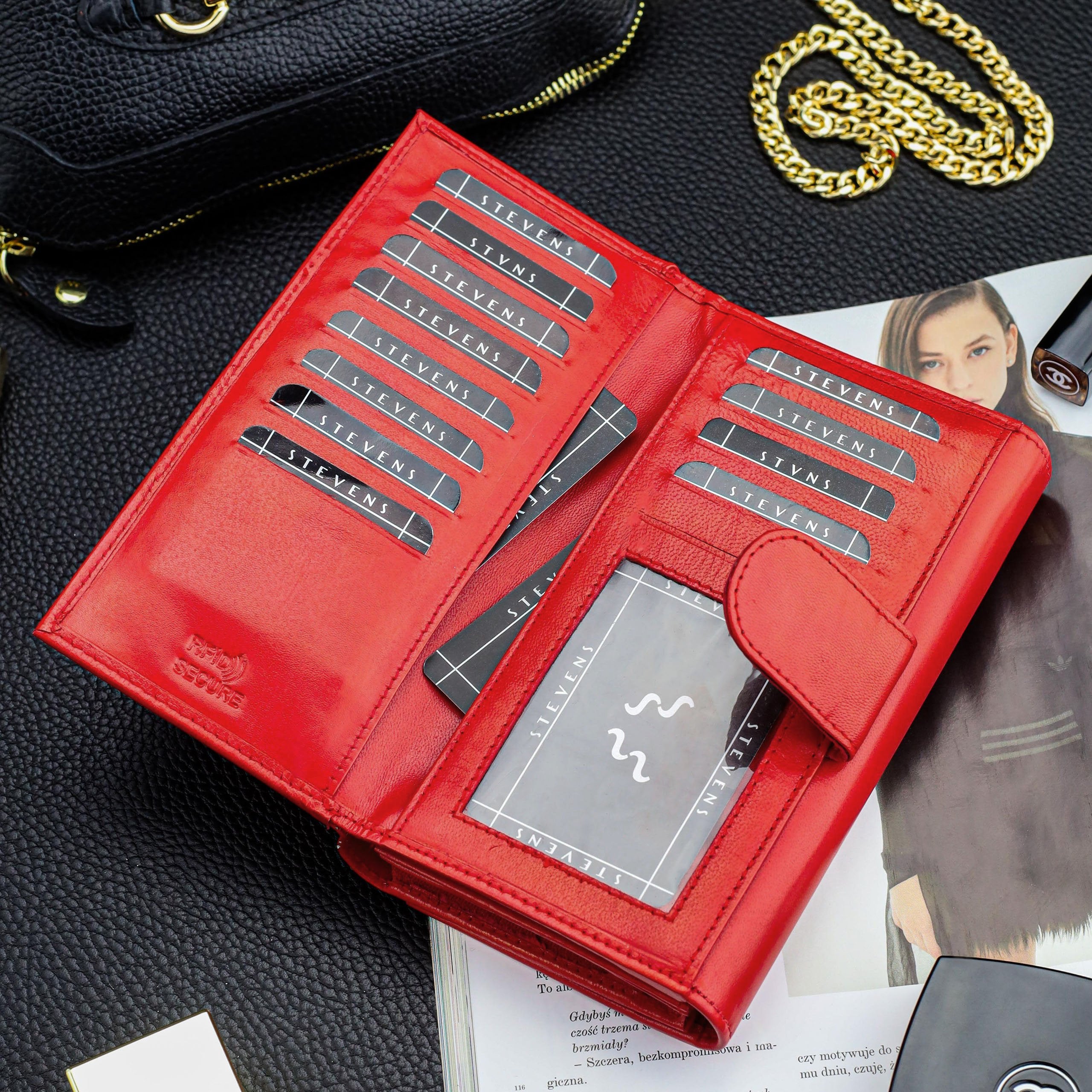 Sieviešu ādas maks "STEVENS" sarkans Z02 / BR-210 ar RFID aizsardzību
