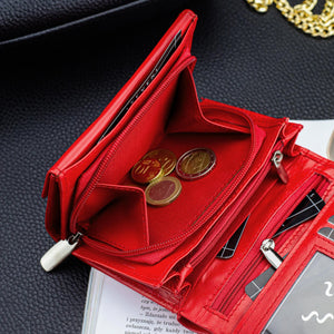 Sieviešu ādas maks STEVENS ar RFID Z02 / RB sarkanā krāsā D1876