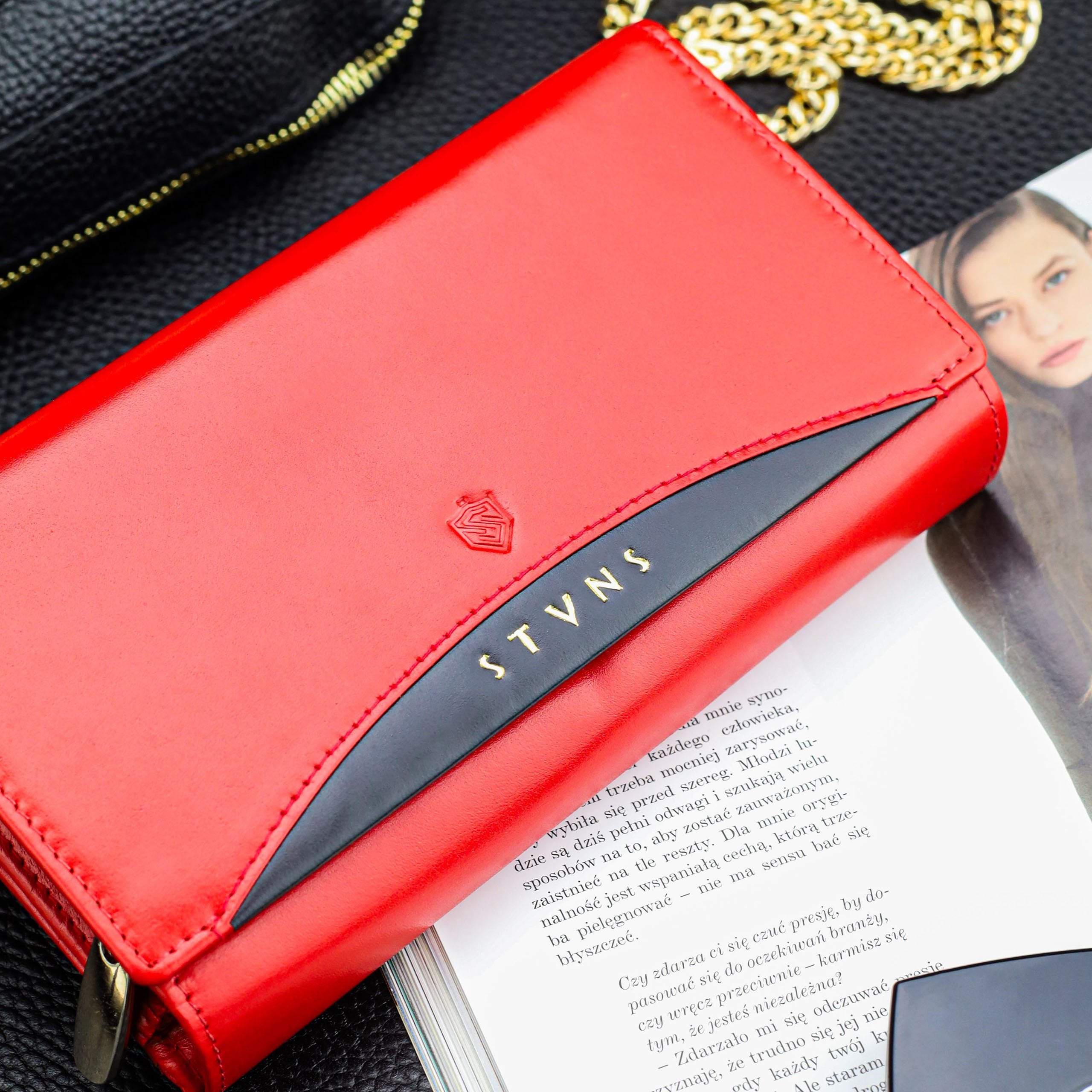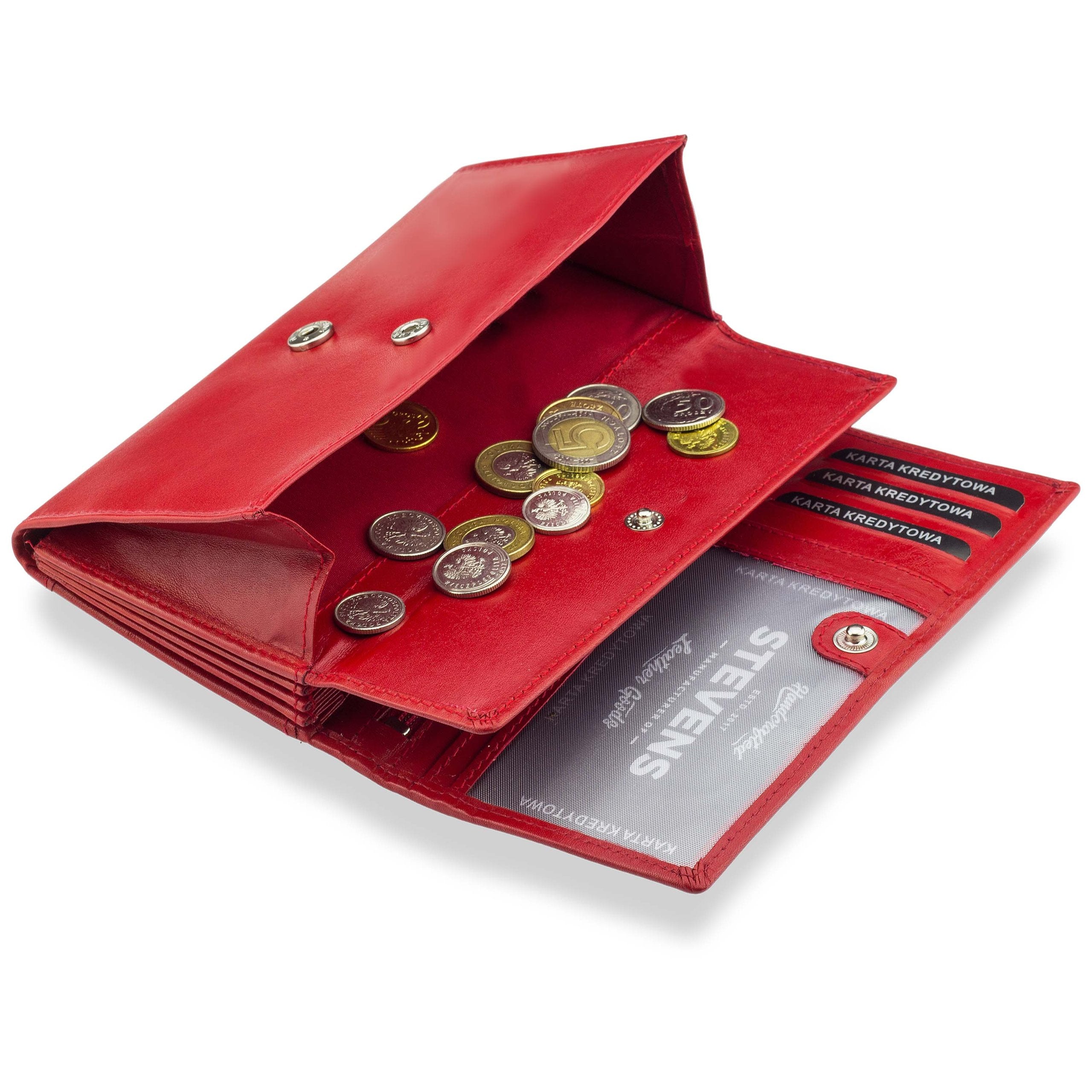 Sieviešu ādas maks STEVENS Z02 / RB-063M Pagarināts sarkans ar RFID aizsardzību