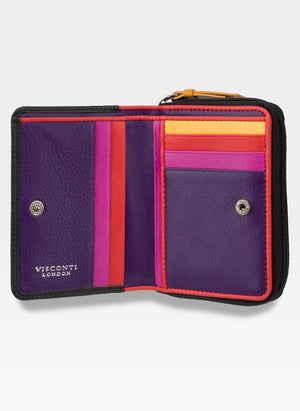 Šis elegantais sieviešu maks no britu zīmola Visconti LOVE kolekcijas ir ideāls stila un funkcionalitātes apvienojums. Makam ir unikāls dizains: viena puse aizveras ar aizdari, otra ar rāvējslēdzēju un dubultu nodalījumu monētām.