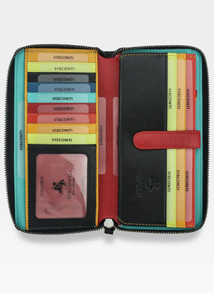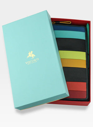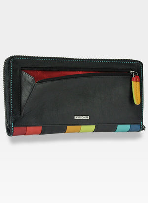 Iepazīstinām ar ekskluzīvu sieviešu maku no britu zīmola Visconti SANTORINI kolekcijas. Šis elegantais maks, kas izgatavots no melnas īstas ādas ar varavīksnes šuvēm, ir lieliski piemērots pārliecinātām un enerģiskām sievietēm, kuras vēlas paust savu unikālo stilu.