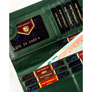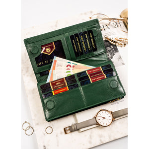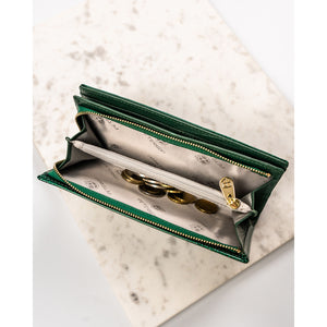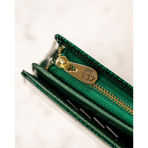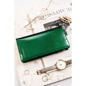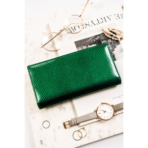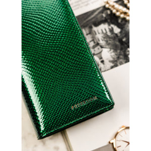 Šis elegantais sieviešu maks, kas izgatavots no īstas ādas, ir lieliska izvēle sievietēm, kuras novērtē kvalitāti un stilu. Tā zaļā krāsa un čūskādas/krokodila ādas raksts piešķir tam ekskluzivitātes un greznības sajūtu.