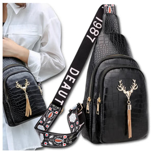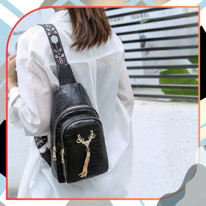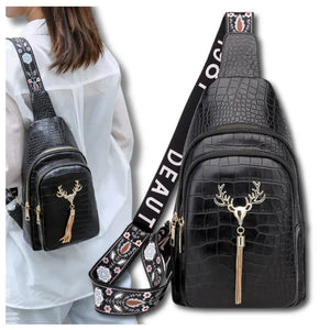 - Rokassomai ir regulējama siksna, kas ļauj to nēsāt gan priekšpusē, gan aizmugurē.