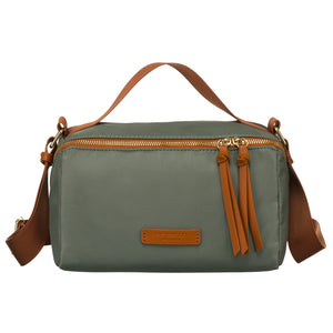 Sieviešu plecu soma, zaļi brūna, neilons un mākslīgā āda R497